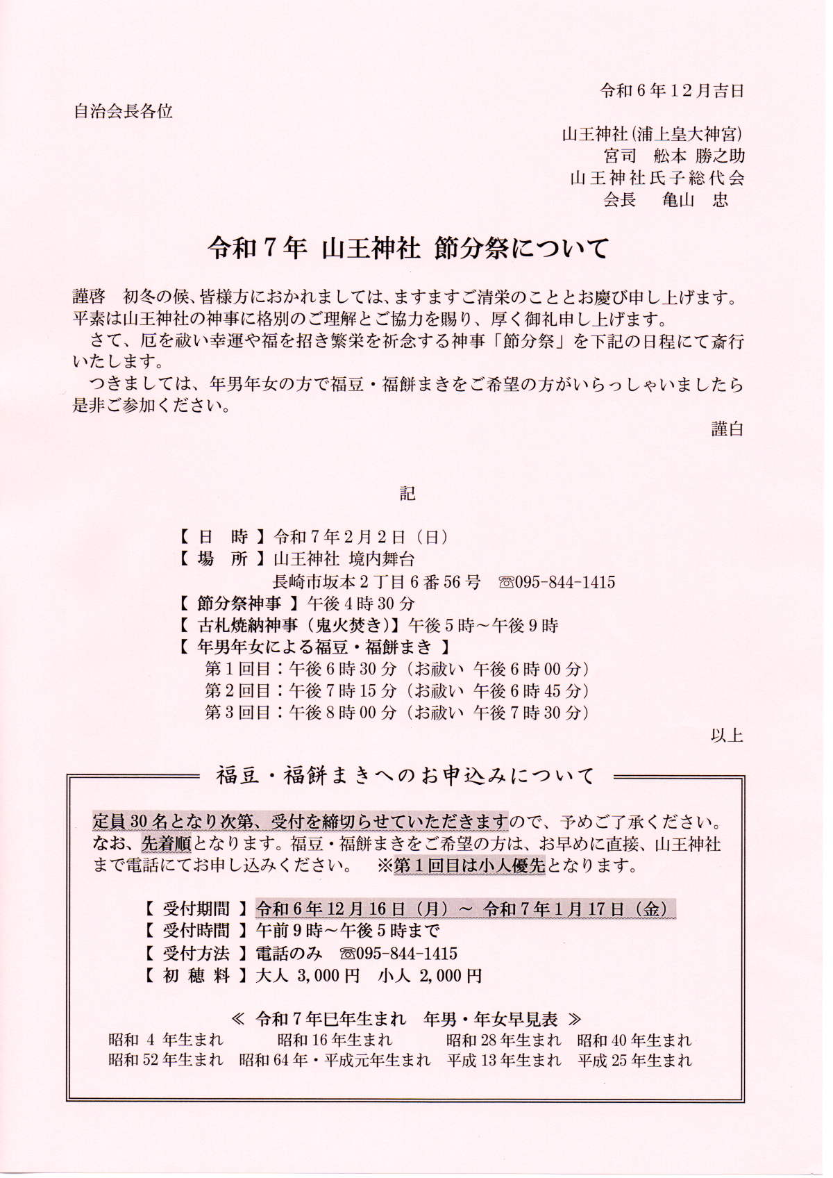 本日、長崎県共同募金会(長崎市支会長は鈴木市長)より、令和6年度 赤い羽根募金(戸別募金)と歳末たすけあい募金(戸別募金)の協力依頼書が届きました。目覚町では例年「戸別募金活動」は行わないで、目覚町自治会として募金をおこなっています。会員さんへは自治会掲示板へのポスター掲示と10月度回覧板にて募金チラシを配布しますので街頭募金にて協力をお願いします。
